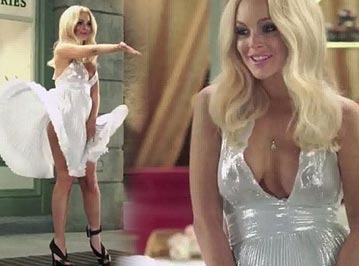 好莱坞明星林赛•罗韩在电影《不合时宜的喜剧》中客串了一个小角色,在预告片中,她穿着与玛丽莲•梦露相似的露背白色连衣裙,裙角被风吹起,金黄色的头发和鲜红的嘴唇突出了她撅嘴的样子,动作极其夸张,想获得超过玛丽莲•梦露的效果,其形象颇受争议。 【详细】